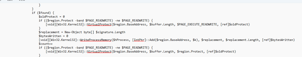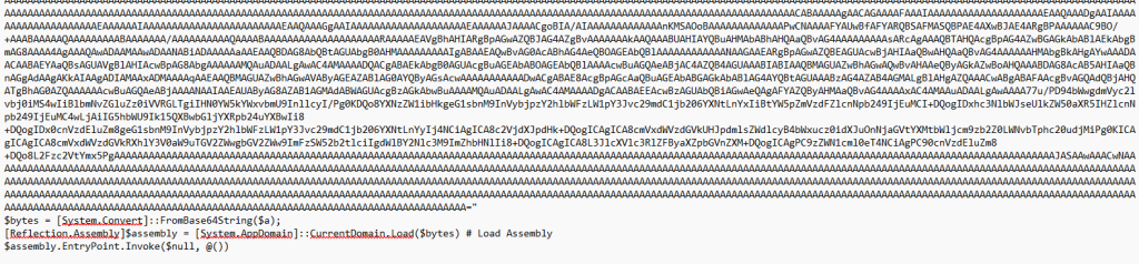 The fourth-stage PowerShell script is not obfuscated. It is in clear text but contains a base64-encoded executable, which the script attempts to run.