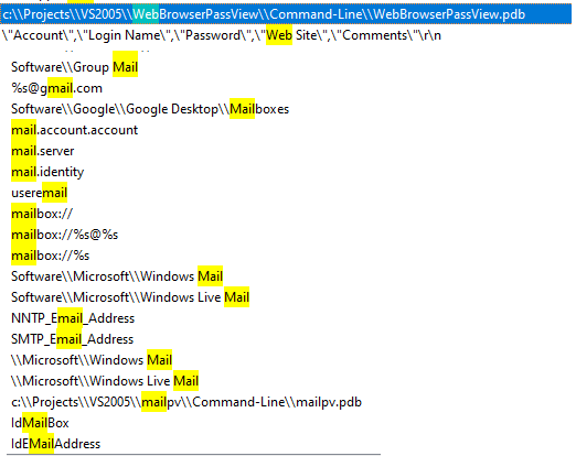 Nirsoft WebBrowserPassView is used to get the password stored in the following browsers: Internet Explorer (Version 4.0 – 11.0), Mozilla Firefox (All Versions), Google Chrome, Safari, and Opera. Also retrieves passwords from Facebook, Yahoo, Google, and GMail,