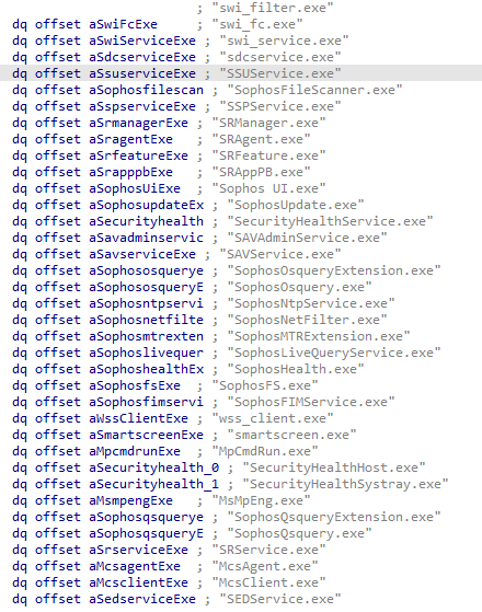 After loading the driver, the AuKill application spawns multiple threads and tries to disable the antivirus (AV)/EDR product through the following methods: