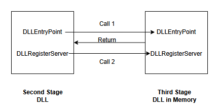 The second-stage DLL then calls its own DLLRegisterServer export.