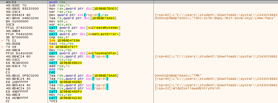 It immediately creates a mutex with the name: 7GhJ-2KlM-8NpQ-7RsT-9UvW-0XyZ-LmNo-PqKs to prevent multiple instances and signal successful execution.