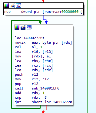 Almost all strings (API names, file names, process names, etc.) are heavily obfuscated using a custom long function that combines: ROL (rotate left) operations,XOR with rolling keys. This makes static analysis significantly harder — strings only become readable at runtime after deobfuscation.