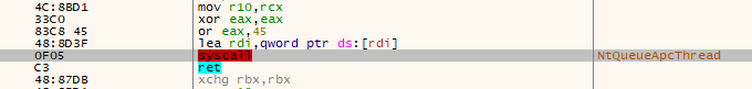 - NtQueueApcThread → queue an APC to an existing thread in dllhost.exe, pointing to the payload entry point