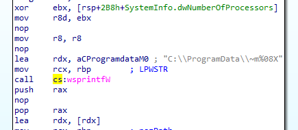 As in previous stages, the payload dynamically resolves all required Windows API functions.The code checks for the existence of a hidden system file in the following path: C:\ProgramData\~m%08X