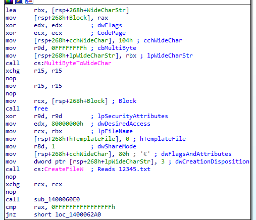 The second-stage code attempts to read a file named 12345.txt from the current working directory of the process. When the file(12345.txt) is present, it must contain a specific secret code (hash) that was generated and written by the first-stage Donut loader during the initial execution.