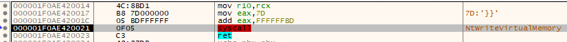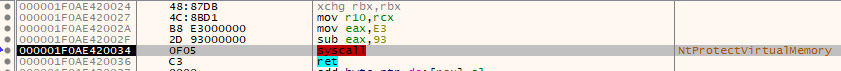 The second stage dynamically resolves the virtual addresses of the following NT syscalls . (NtWriteVirtualMemory, NtProtectVirtualMemory, NtReadVirtualMemory, NtAllocateVirtualMemory). These are used for all memory manipulation operations.
