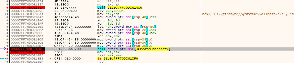 - NtAllocateVirtualMemory → allocate memory in the remote dllhost.exe