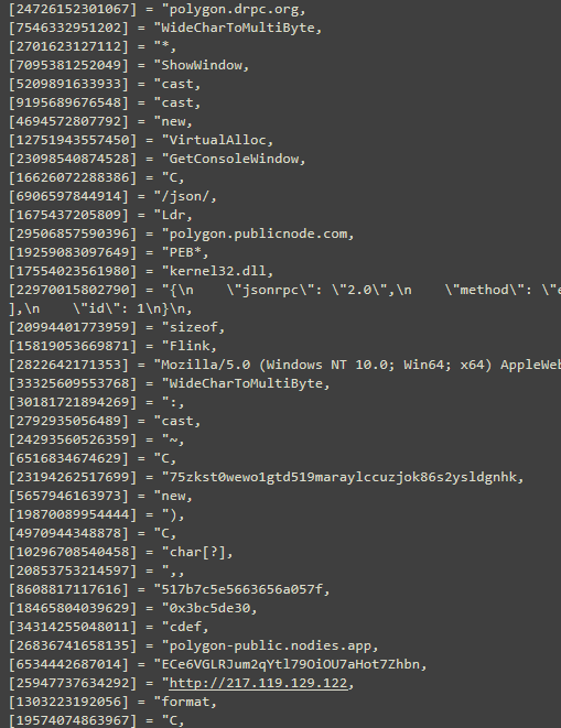Variant 2: Payload(decimal) → Windows-1252 byte-to-string conversion; multiple Polygon RPC endpoints for improved C2 retrieval reliability.