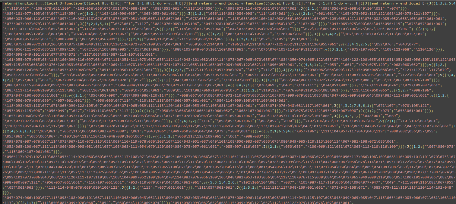 Due to the extreme complexity of the obfuscation layers, standard Lua IDEs freeze or crash when attempting to load or execute the script directly.